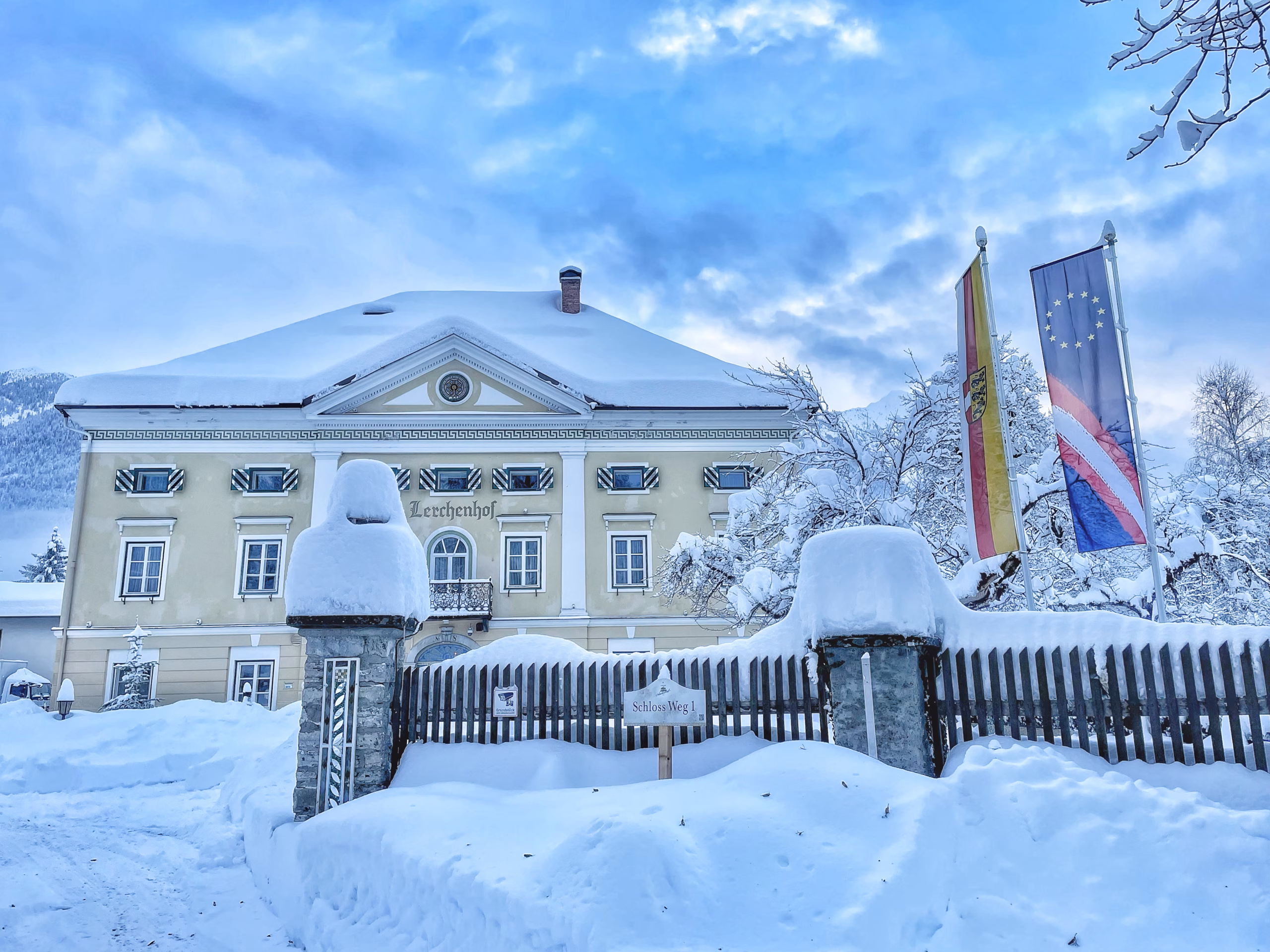 Nur wenige Minuten vom Skigebiet Nassfeld entfernt, bietet das historische Schloss Lerchenhof die perfekte Kombination aus Pistennähe und idyllischer Ruhe. Gäste starten ihren Skitag entspannt – mit Skipassverkauf direkt im Hotel und Gratis-Skibus. Abends wartet die Naturküche mit Slow-Food-Kulinarik aus eigener Landwirtschaft und regionalen Partnerbetrieben. Doch das Schloss ist mehr als ein Skihotel: Direkt vor der Haustür locken Rodelbahn, eigene Loipe und Winterwanderwege – ideal für alle, die Abwechslung zum Pistenspaß suchen. Nachhaltigkeit, familiäre Gastfreundschaft und das besondere Ambiente eines denkmalgeschützten Schlosses machen den Aufenthalt einzigartig. Wer Skivergnügen, ehrlichen Genuss und Naturidyll verbinden möchte, findet im Schloss Lerchenhof den idealen Rückzugsort für den Winterurlaub.