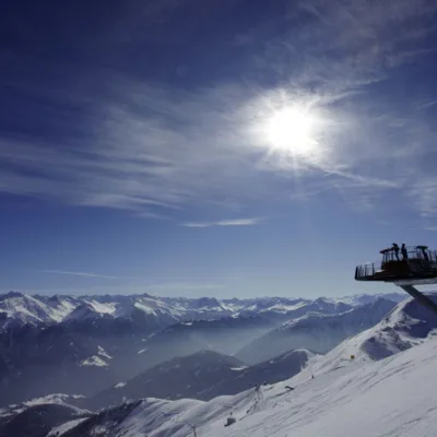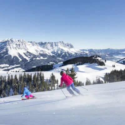SkiWelt Wilder Kaiser. Well-connected. With the witches on the slopes above Söll. With a billowing black skirt, a pointed hat, and red smoke trailing behind her, she whizzes down the slopes. Cheering children chase after her.