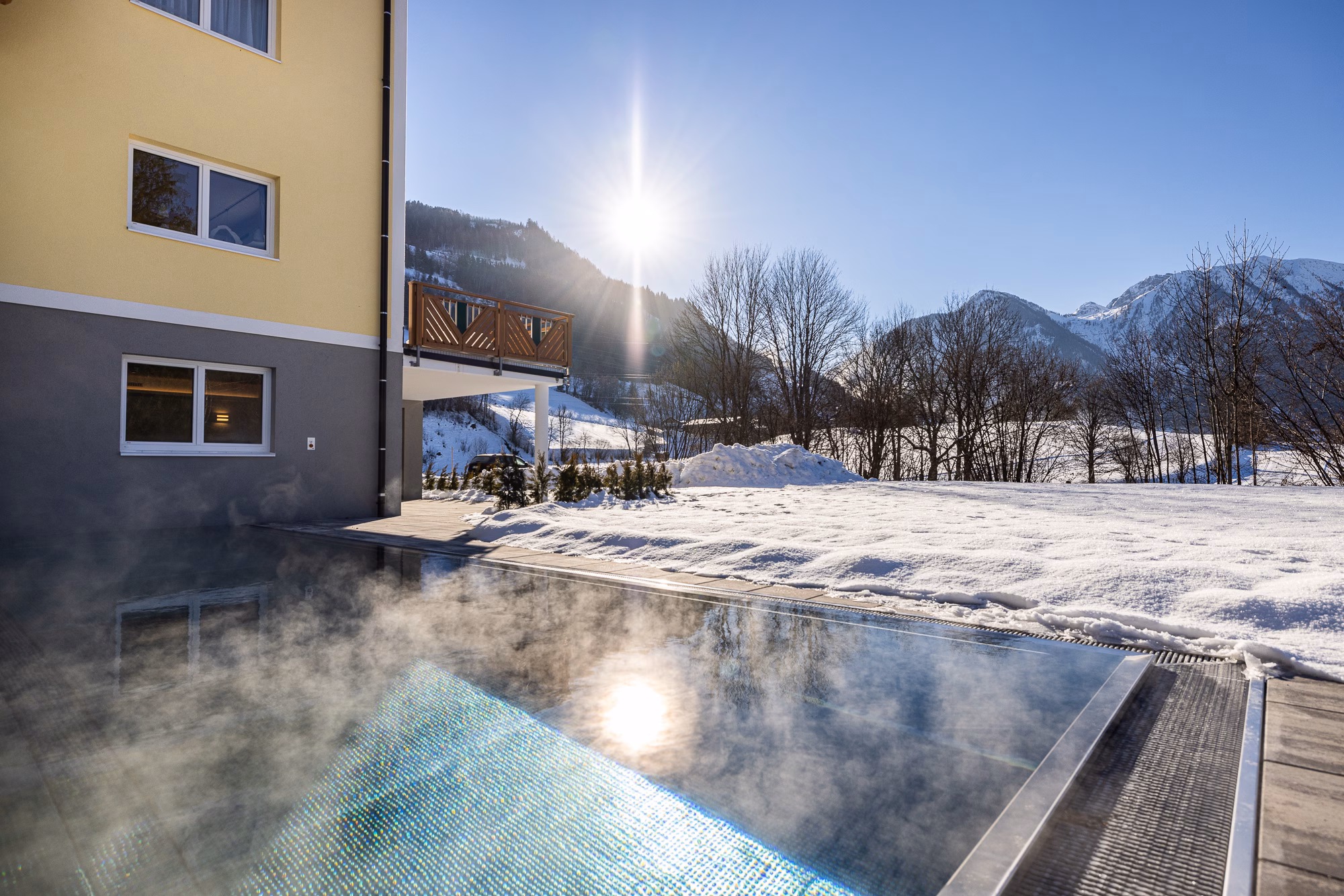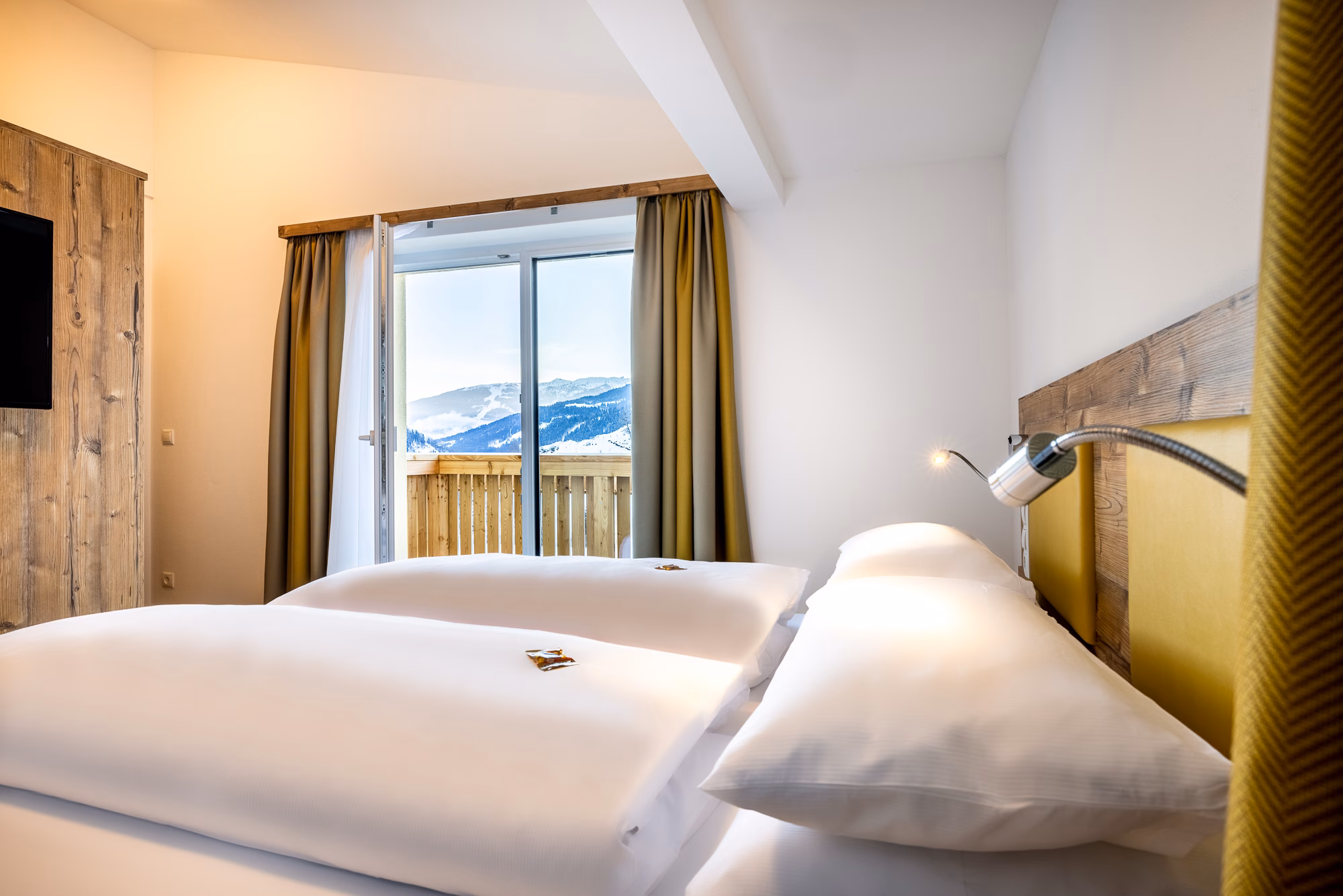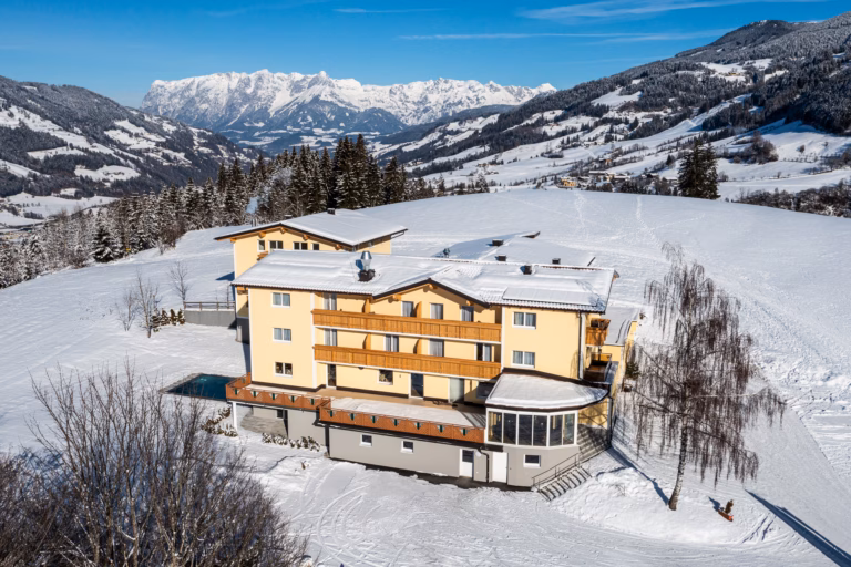 Nestled on a sunny plateau, this family-run hotel awaits you amidst a breathtaking winter landscape. Located directly on the Snow Space Salzburg ski area, you can reach the slopes in just a few minutes via the ski shuttle. Whether you enjoy downhill skiing, cross-country skiing, tobogganing, or winter hiking, winter begins right outside the door. After an active day, return to a world of relaxation: the wellness area with its heated panoramic swimming pool, bio sauna, and Finnish sauna invites you to unwind. The newly renovated rooms offer ample comfort, all with balconies and views of the snow-covered mountains. In the evening, a four-course menu awaits you, featuring regional products, vegetarian options, and that certain something extra – true culinary delight you can taste. Your place for a winter getaway with heart – peaceful, personal, and special.