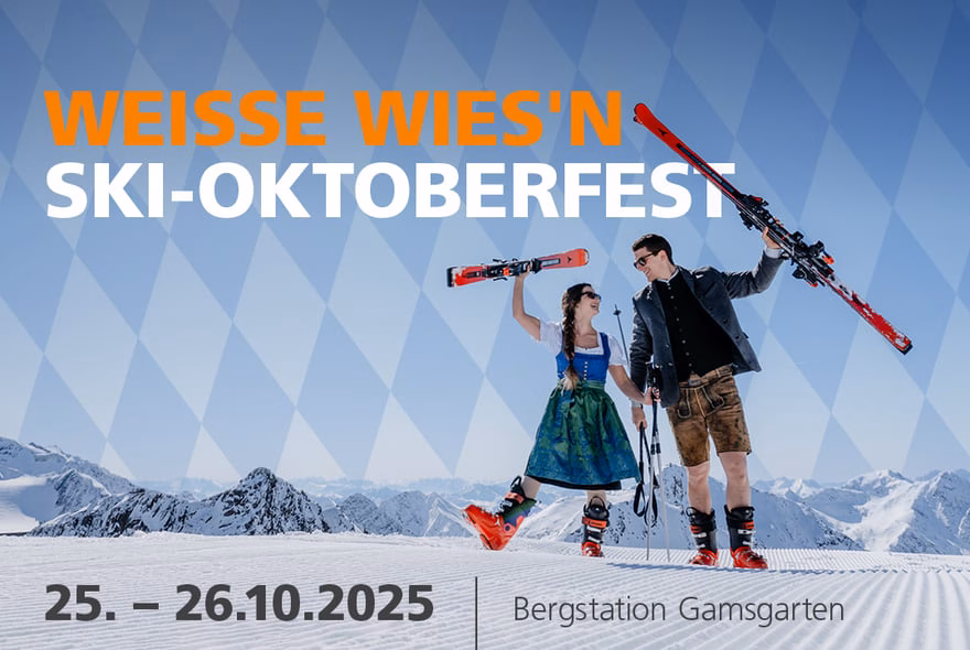 Beim mittlerweile legendären und bei Jung & Alt beliebtem Ski-Oktoberfest an der Bergstation Gamsgarten wird in typischer Oktoberfest-Tracht zur Live-Musik geschunkelt. Der traditionelle Bieranstich, Wiesn-Schmankerln wie Weißwurst, Brezn und Co. sowie die packende Oktoberfest-Live-Musik mit Mitsing-Garantie sorgen für ausgelassene Feststimmung in der Stubaier Gletscherwelt.