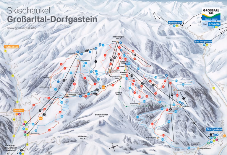 Besonderheiten: | Snowpark in Großarl (2 Lines, je 300 m), Funslope in Großarl (für Kinder mit Tunnel, Wellen, etc.). Erlebniswiese Fischbacher im Talbereich mit Tellerlift, Übungswiese, Förderband, Tubing-Karussell, etc. Benützung Gratis für alle! |