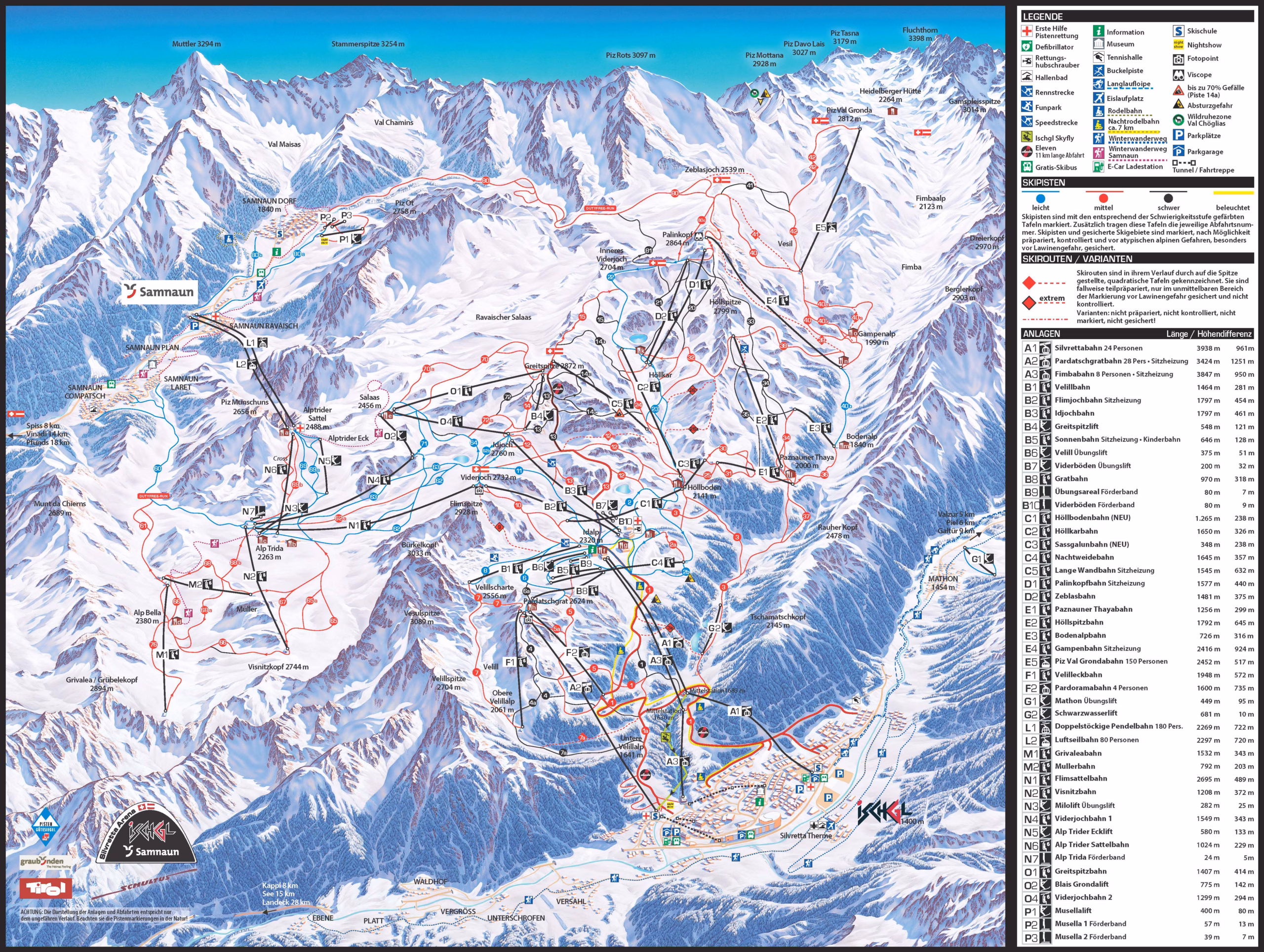 Lifte: | Anzahl:80 Lifte Kapazität:135.417 Personen pro Stunde Lifte: 45 Ischgl, 10 Galtür, 21 Kappl & See |