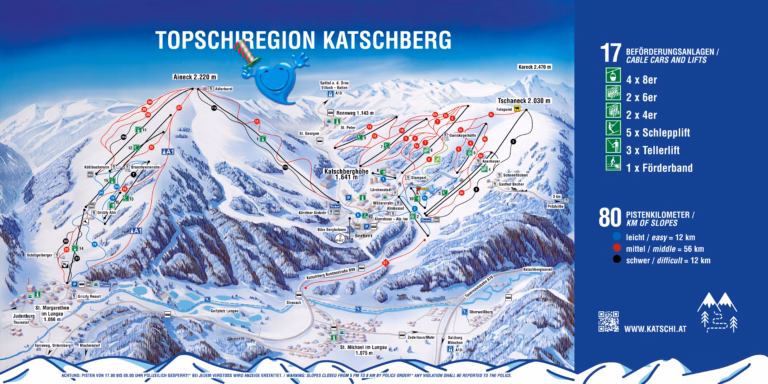 Der Katschberg, im Grenzgebiet von Kärnten und Salzburg gelegen, hat in den vergangenen Jahren eine beachtenswerte Entwicklung hingelegt: Lifte wurden erneuert, Abfahrten erweitert, Beschneiungsanlagen auf den neuesten Stand gebracht und die Hotelinfrastruktur sowohl qualitativ als auch quantitativ aufgewertet. Der Katschberg zählt heute zu Österreichs interessantesten Destinationen und ist von Süd und Nord über die A10 Tauernautobahn leicht erreichbar. Damit die Gäste auch an Spitzentagen einen Parkplatz ergattern, gibt es ein ausgeklügeltes Leitsystem, das Auskunft darüber erteilt, wo wie viele der insgesamt 3.000 Stellplätze frei sind. Im Gebiet erwarten die Wintersportler dann 70 Pistenkilometer, 16 moderne Liftanlagen und laut Eigenangaben „die gemütlichsten Skihütten der Alpen“ – immerhin samt Bars und Gasthöfen 17 an der Zahl. Mit dem Ausbau des Gamskogelexpress wurde die Förderleistung der Bergbahnen auf 28.500 Personen pro Stunde erhöht – von dort westwärts Richtung Freiberglift und Sonnleitnlift erstrecken sich eine Reihe von abwechslungsreichen, nicht allzu schwierigen Pisten. Diese eignen sich aber perfekt zum Carven – und man kann dort auch wieder Mal Schlepplift fahren. Letzteres gilt besonders auch für Kinder, die heute oft gar nicht mehr wissen, wie Schleppliftfahren funktioniert.